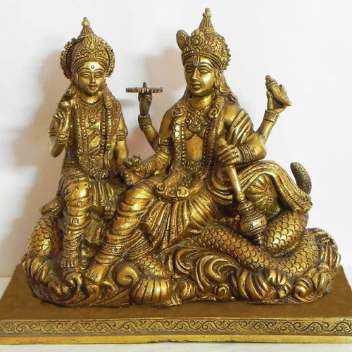 Polished Brass Vishnu Lakshmi Idol